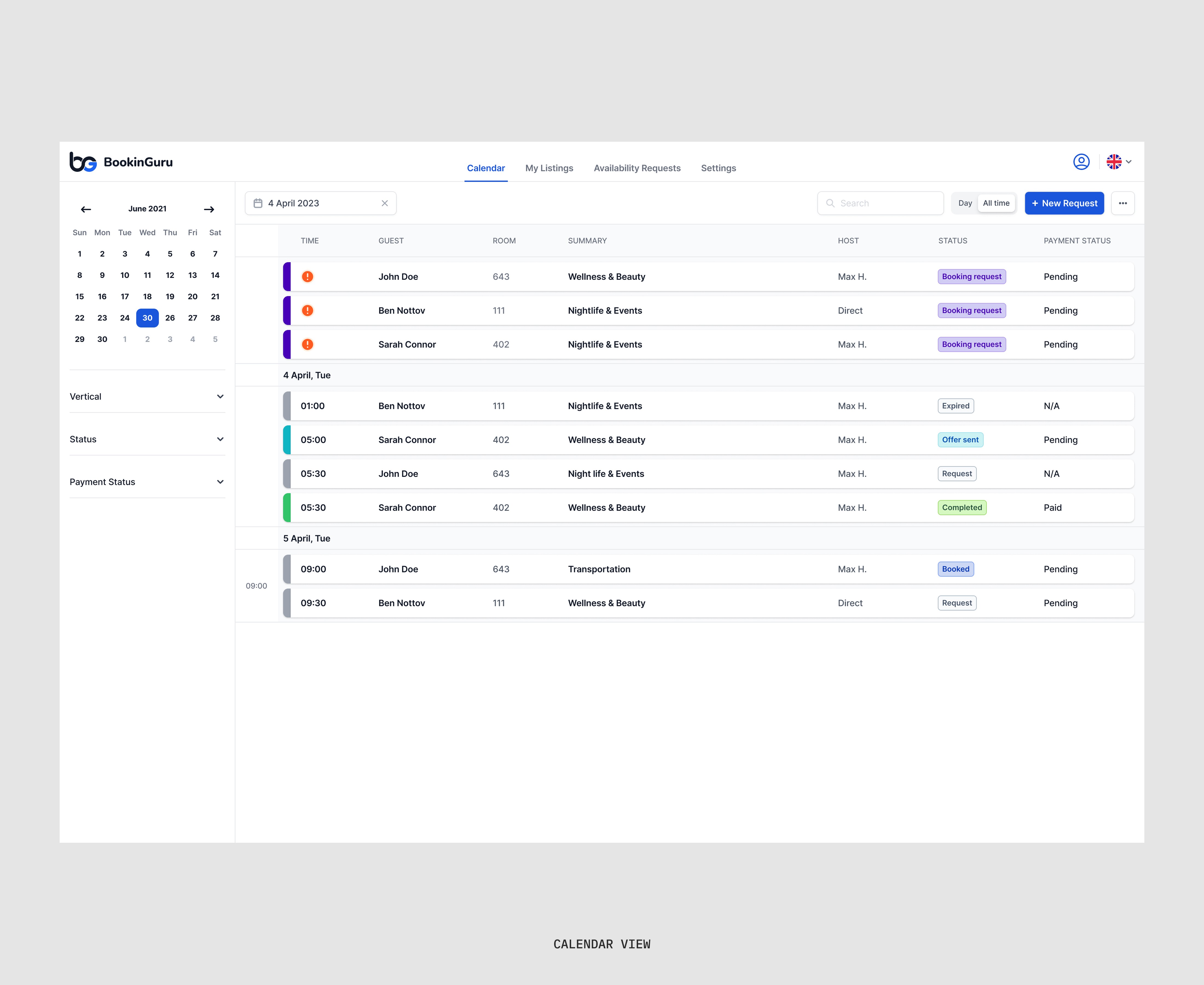 I started by mapping every major user flow with the business analyst. BookinGuru has many layers — a calendar for concierges, service listings for providers, custom catalogs for hotels, and booking dashboards for guests.