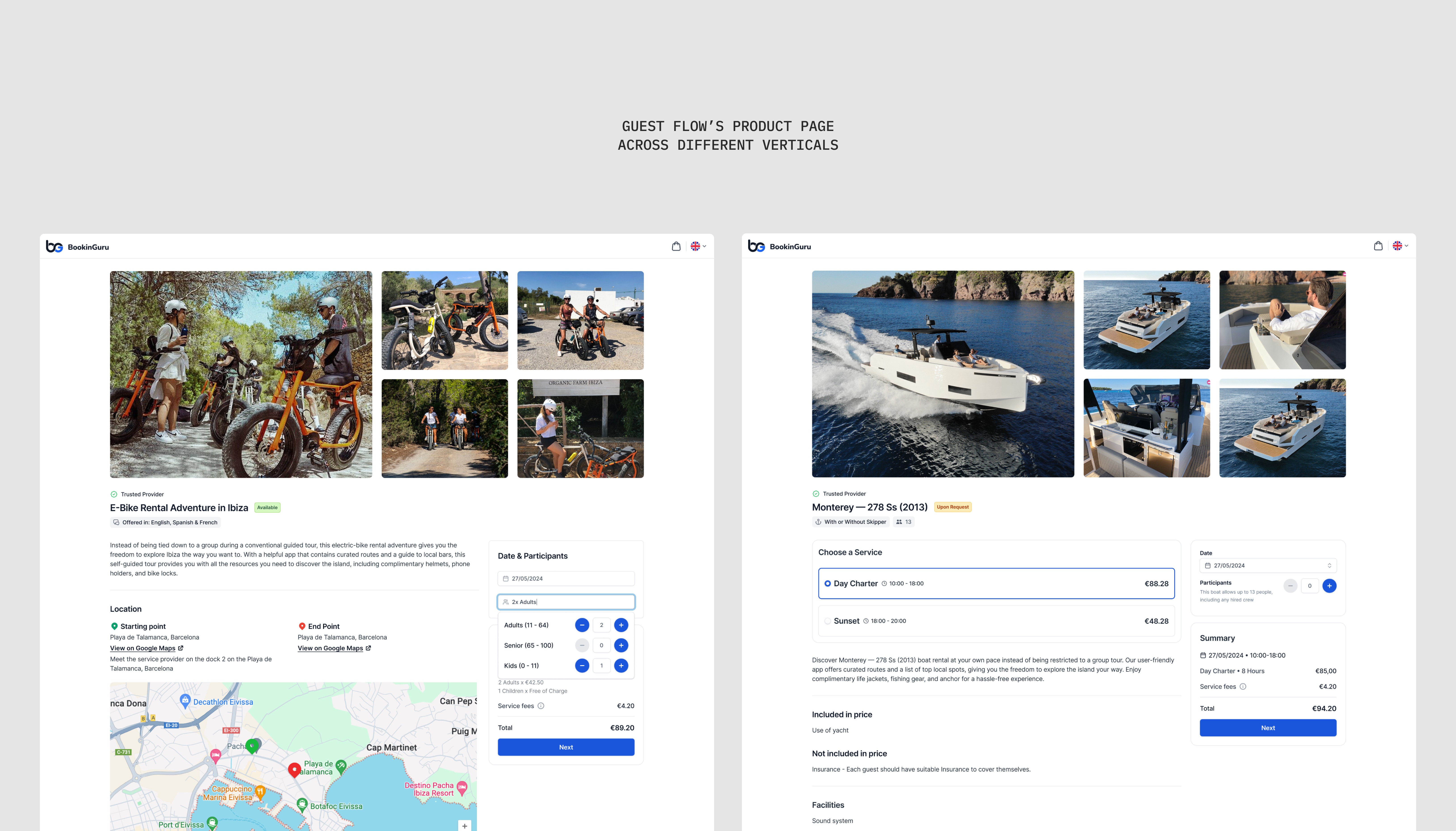 I redesigned the guest booking flow from scratch so it could adapt dynamically to any vertical while keeping one consistent structure.