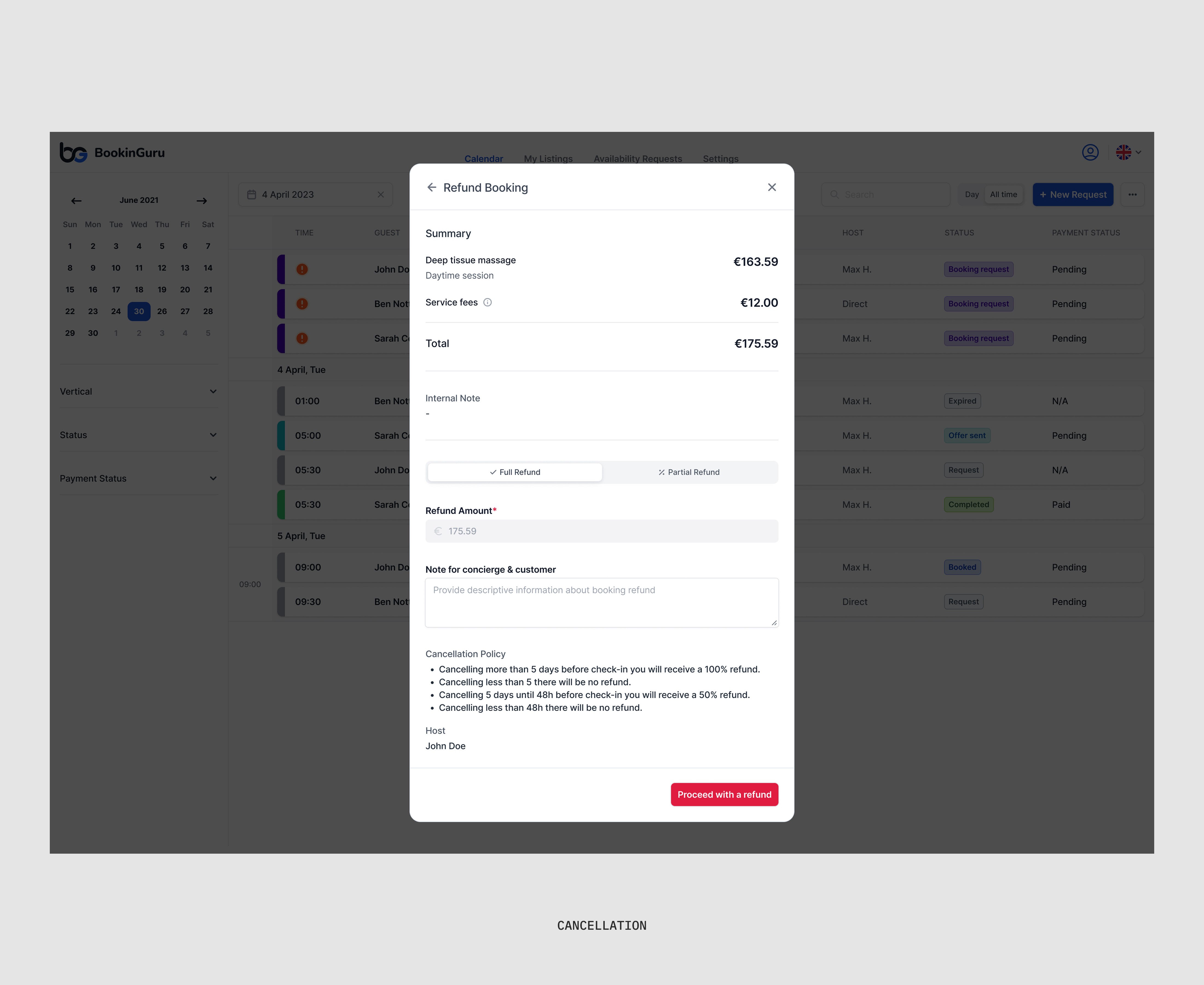 Rebuilt the concierge flow: from calendar → new offer → add guest → pick services → share itinerary.